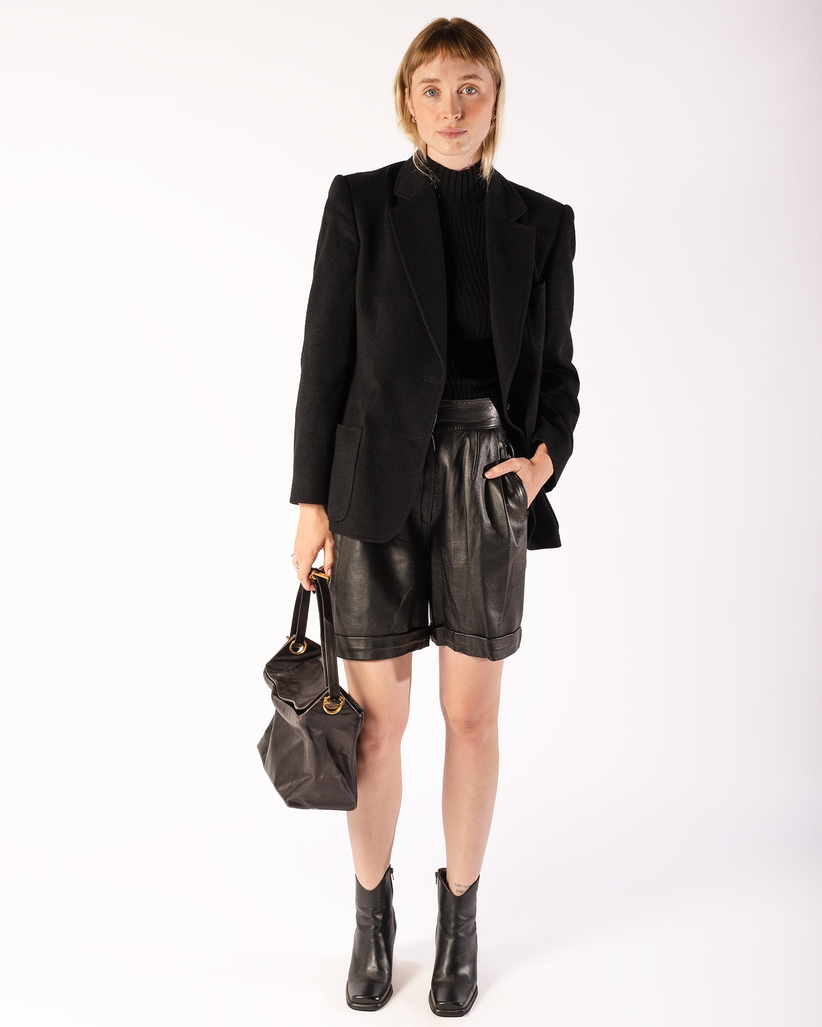 Description: 1980s Roberta di Camerina black leather purse with adjustable strap.