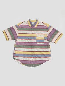 Backroad Blues Multi Colour Striped Short Sleeve Cotton Button-Up Top